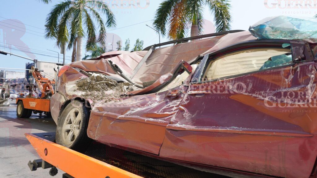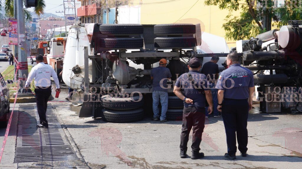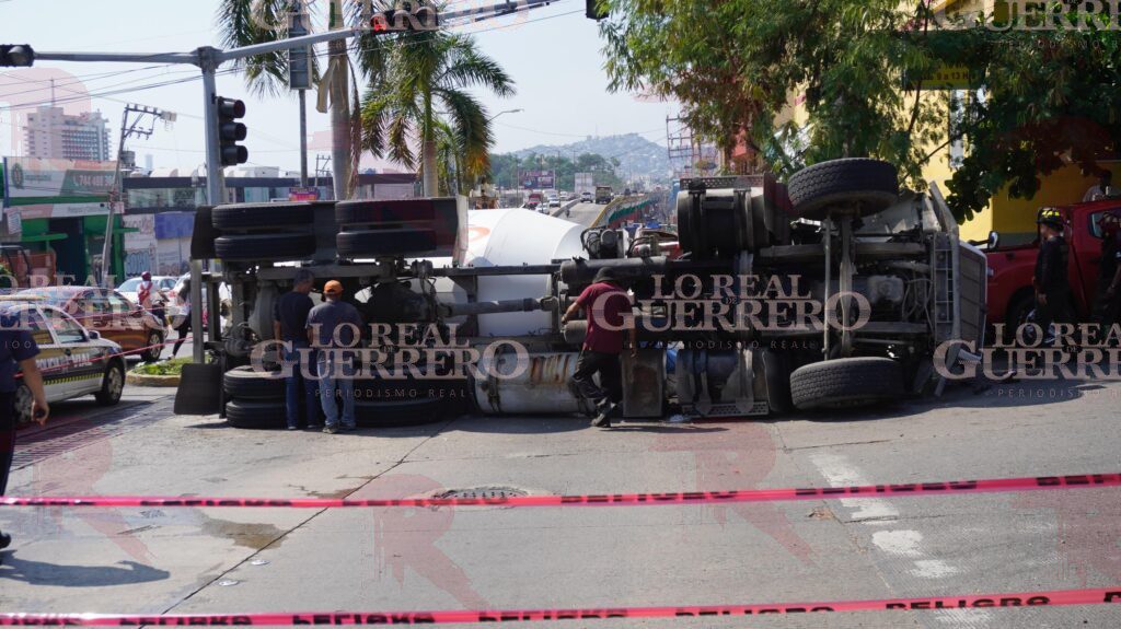 Aparatoso accidente entre camión revolvedor de cemento y camioneta deja dos lesionados