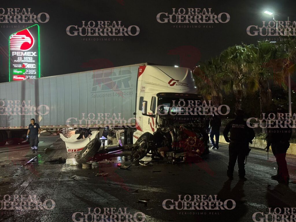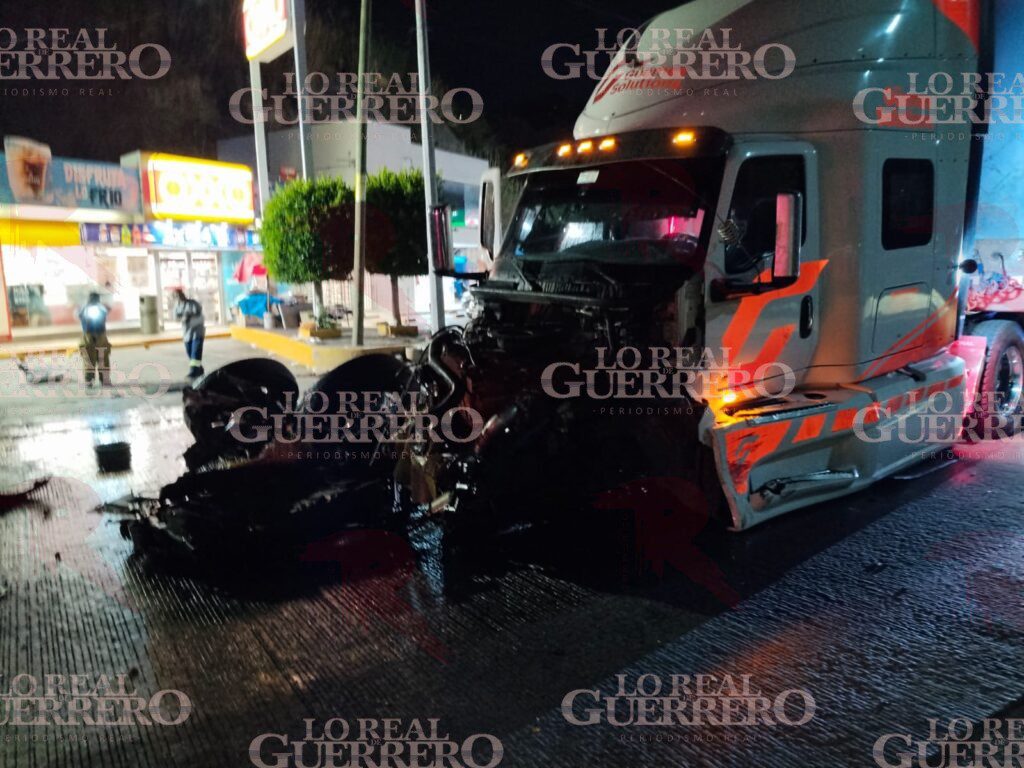 Aparatoso choque entre un tractocamión y un auto en Chilpancingo deja tres jóvenes heridos
