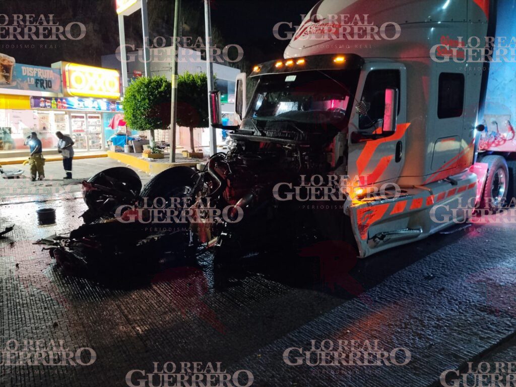 Chilpancingo, Gro., 19 de abril de 2026.– La madrugada de este domingo, al norte de la capital, un aparatoso choque entre un tractocamión y un automóvil dejó como saldo tres jóvenes heridos, quienes fueron trasladados a un hospital.