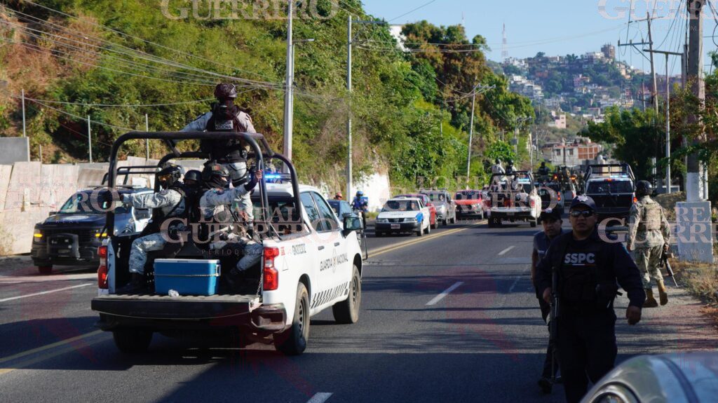 Momentos después, por la carretera en el municipio de Acapulco pasó un convoy con más de 20 vehículos de la Fiscalía General del Estado (FGE), la Marina, Guardia Nacional, Secretaría de Seguridad y Protección Ciudadana (SSPC), Policía Estatal y Policía Municipal, quienes se toparon con la manifestación.