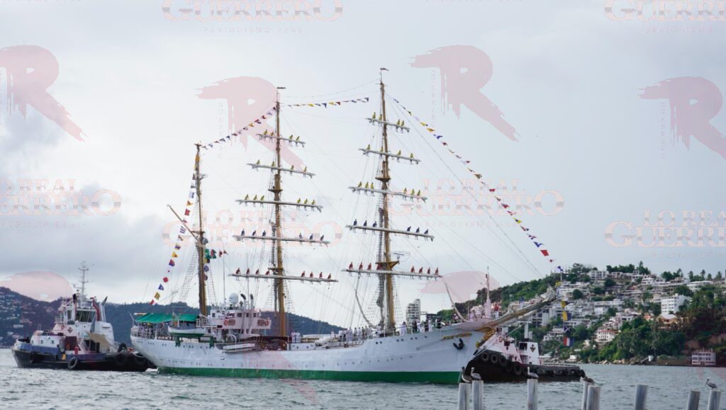 Acapulco, Gro., 23 de septiembre de 2025.— La mañana de este martes atracó en el puerto de Acapulco el buque escuela ARC Gloria, de la Armada de Colombia.