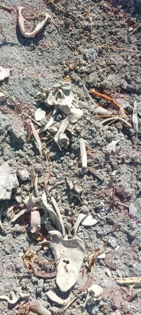 Tras recorrer aproximadamente 20 minutos por un camino de terracería, lograron ubicar el lugar donde los restos óseos de al menos una persona se encontraban esparcidos sobre la superficie, en un área donde además se apreciaban señales de excavaciones previas.