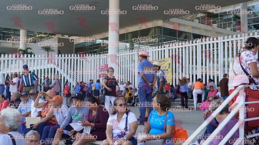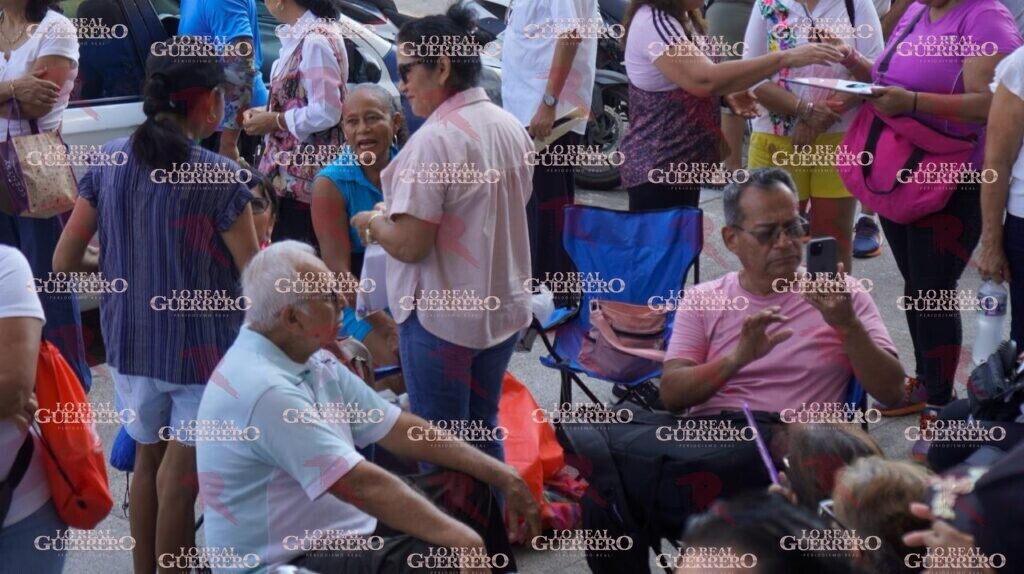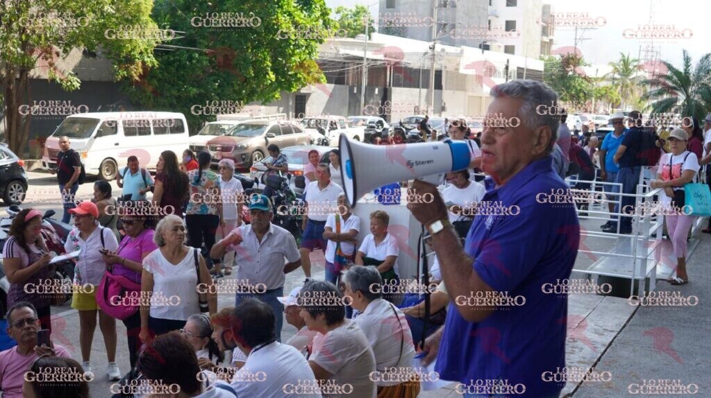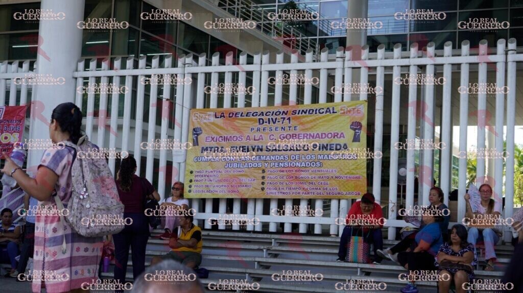 Acapulco, Gro., a 29 de abril de 2026.– La mañana de este miércoles, docentes jubilados tomaron las oficinas de Administración y Finanzas del estado ubicadas en Acapulco, para exigir el pago de diversos bonos que el gobierno estatal les adeuda, lo que afectó trámites de decenas de ciudadanos, como el de placas.