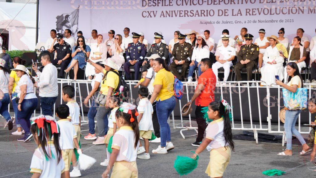 Acapulco, Gro., 20 de noviembre de 2025.- La mañana de este jueves, casi ocho mil personas participaron en el desfile cívico-deportivo con motivo del CXV aniversario de la Revolución Mexicana, en Acapulco.