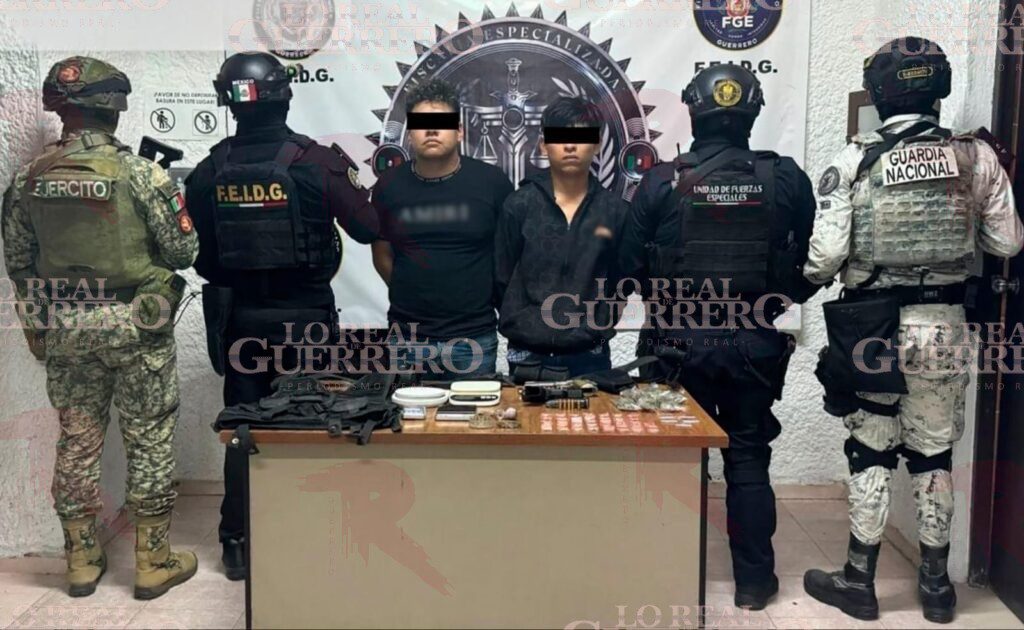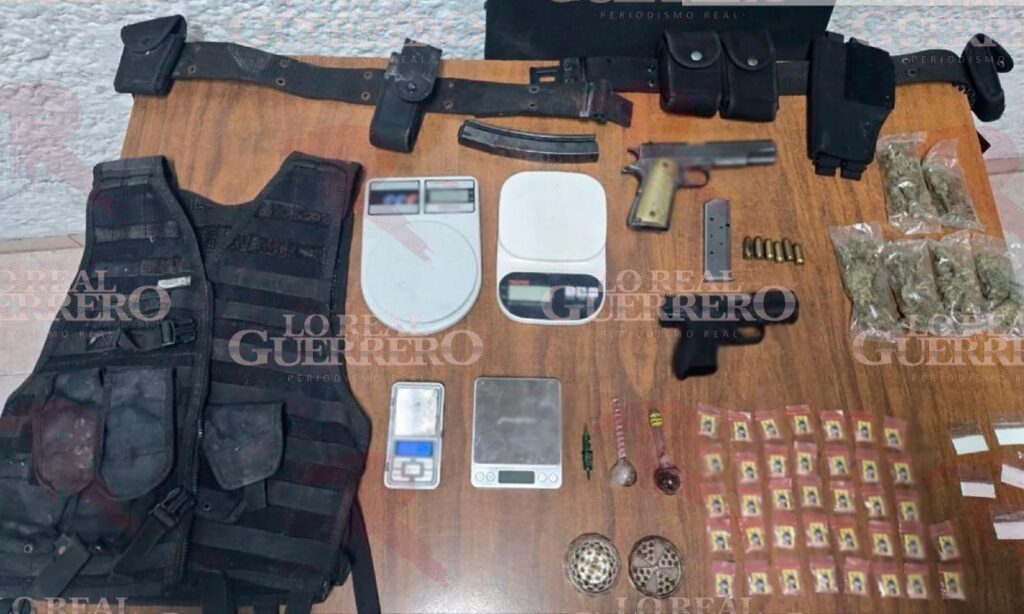 Detienen en Chilpancingo a dos presuntos integrantes de Los Tlacos con armas y droga durante cateo