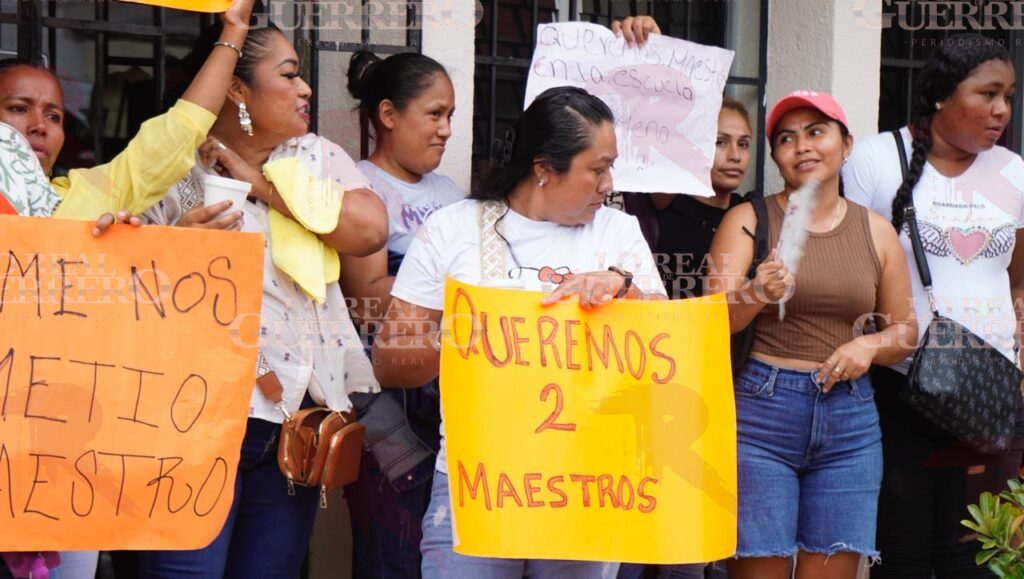 Acapulco, Gro., a 8 de octubre de 2025.– Para exigir la asignación de dos maestros con los que no cuenta su plantel desde hace dos años, padres de familia de la escuela telesecundaria Pablo Mena Medina tomaron las oficinas de la SEG en Acapulco.