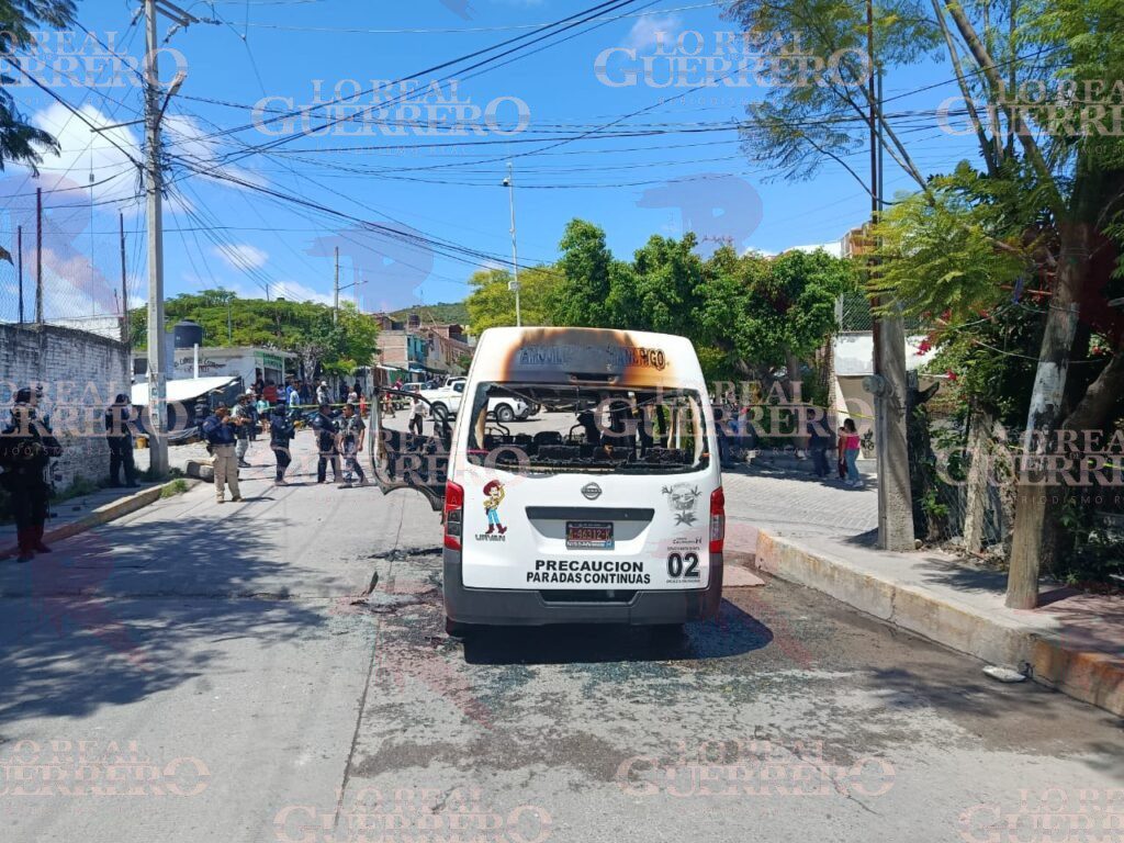 El hecho se reportó a la línea de emergencias 911 alrededor de las 11:00 horas, indicando que al menos dos sujetos habían prendido fuego a una unidad del transporte público que trasladaba pasajeros rumbo a la comunidad de Amojileca, municipio de Chilpancingo.
