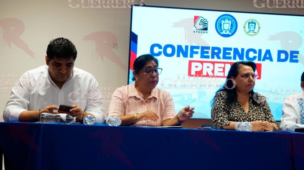 Acapulco, Gro., a 20 de abril de 2026.- En conferencia de prensa, autoridades y representantes sindicales de la Universidad Autónoma de Guerrero (UAGro) convocaron a la realización de una marcha para exigir el esclarecimiento del ataque en contra de la protesta que mantenían catedráticos a las afueras de la Coordinación General de la Zona Sur, y adelantaron que buscarán reforzar la seguridad en sus planteles.