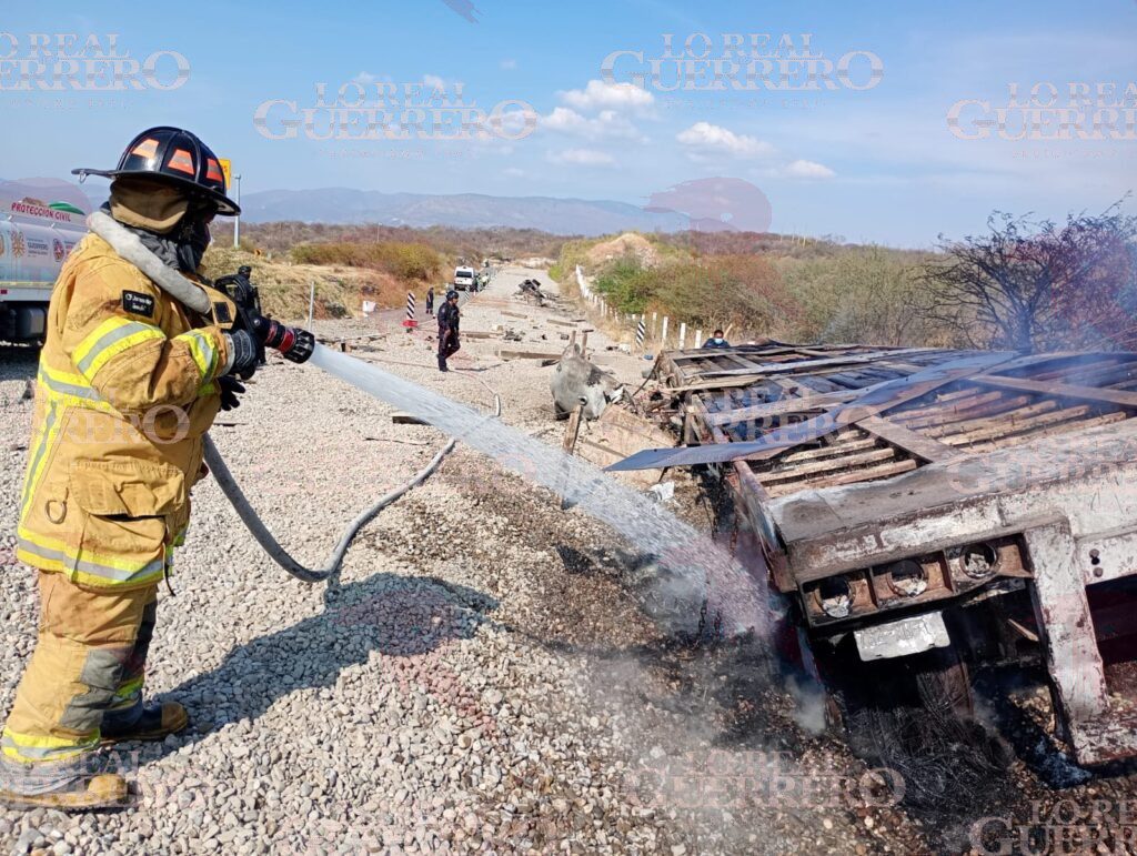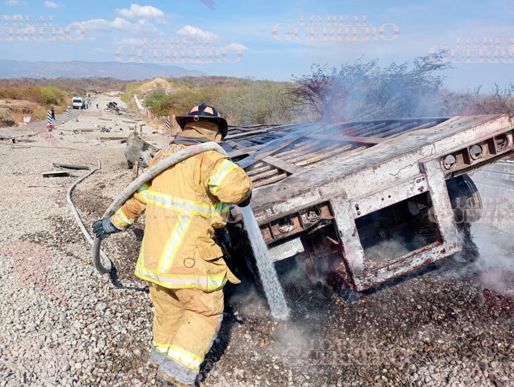 Neri, Gro., 9 de enero de 2026.– La tarde de este viernes, el conductor de un tráiler perdió la vida tras volcar sobre la Autopista del Sol, en los carriles de sur a norte, cerca del puente Solidaridad.El aparatoso accidente fue reportado a las autoridades alrededor de las 13:45 horas. Se informó que, a la orilla de la vía de cuota, en el kilómetro 220, a la altura de la rampa de frenado, un tráiler que presuntamente se quedó sin frenos volcó.Al arribar al lugar, corporaciones policiacas localizaron la pesada unidad completamente destrozada y en llamas; el remolque se había separado de la cabina. El conductor quedó sin vida entre los fierros retorcidos.En el sitio, personal de Protección Civil del Estado sofocó el incendio que consumió parcialmente el tráiler y posteriormente realizó las maniobras para rescatar el cuerpo.Peritos en criminalística efectuaron las diligencias correspondientes y, al finalizar, ordenaron el traslado del cuerpo a las instalaciones del Servicio Médico Forense de Chilpancingo, en calidad de desconocido.