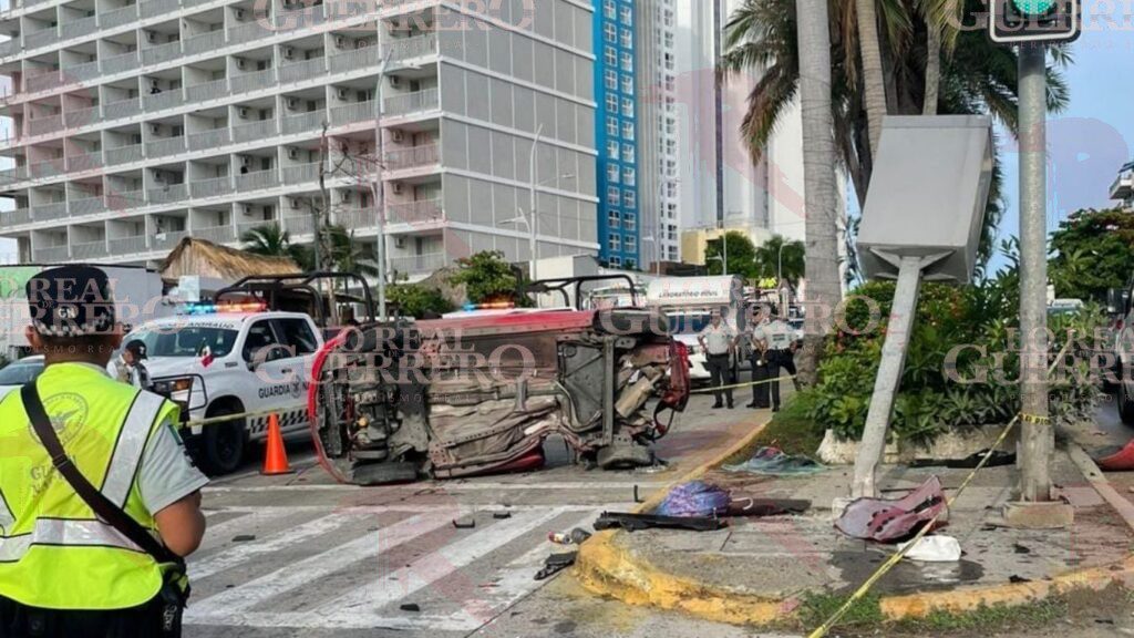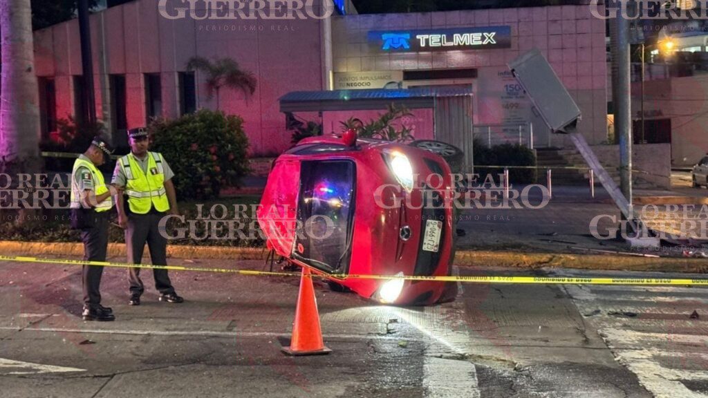 Acapulco, Gro., 20 de septiembre de 2025.- La mañana de este sábado, una mujer de aproximadamente 35 años que conducía un vehículo Mazda 2, color rojo, perdió la vida tras chocar y volcar sobre la Costera Miguel Alemán, frente a la sucursal de Telmex, ubicada en el fraccionamiento Club Deportivo, en Acapulco.