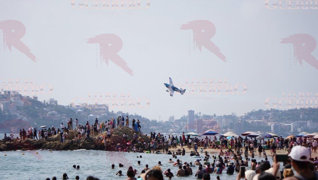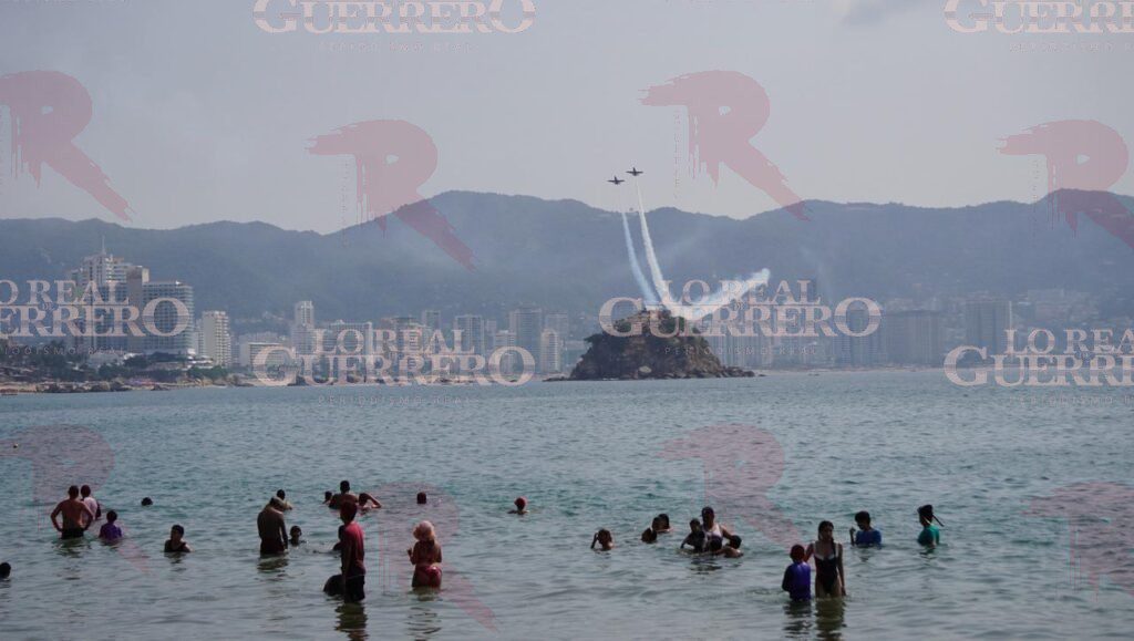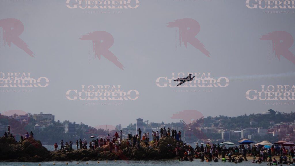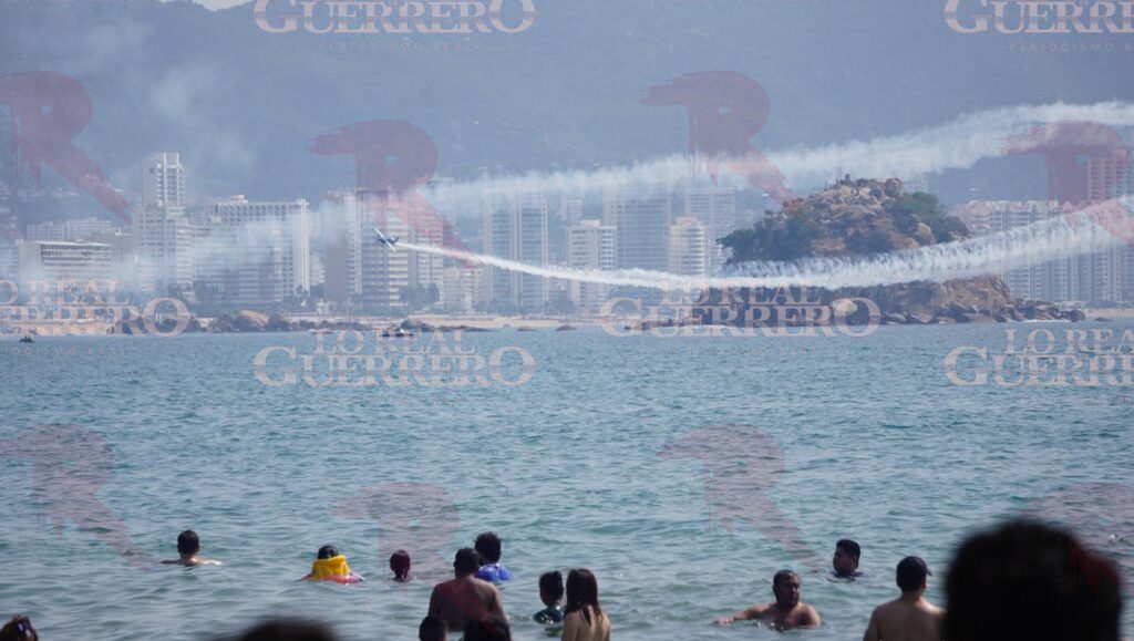 Acapulco, Gro., a 22 de noviembre de 2025.— Miles de personas, entre porteños y turistas, se dieron cita en las playas de Acapulco para observar el “Air Show 2025”, evento que registró un repunte en la ocupación hotelera que llegó al 87.7 por ciento de cuartos rentados.