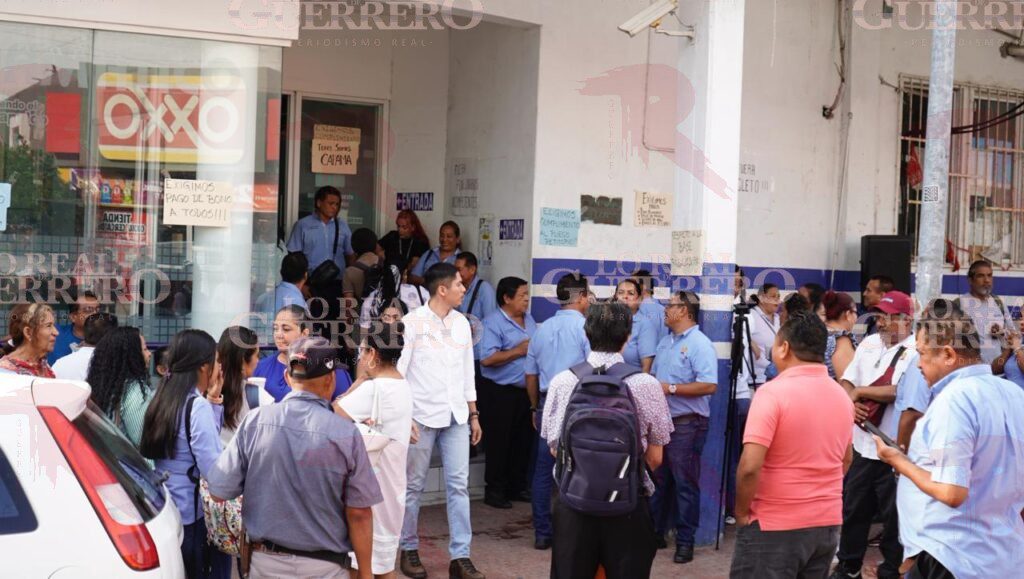 Acapulco, Gro., a 7 de octubre de 2025.– La mañana de este martes, trabajadores sindicalizados tomaron las oficinas de la Comisión de Agua Potable y Alcantarillado del Municipio de Acapulco (CAPAMA) para exigir el cumplimiento de una minuta de acuerdos firmada el mes pasado y el pago del bono por el Día del Burócrata.