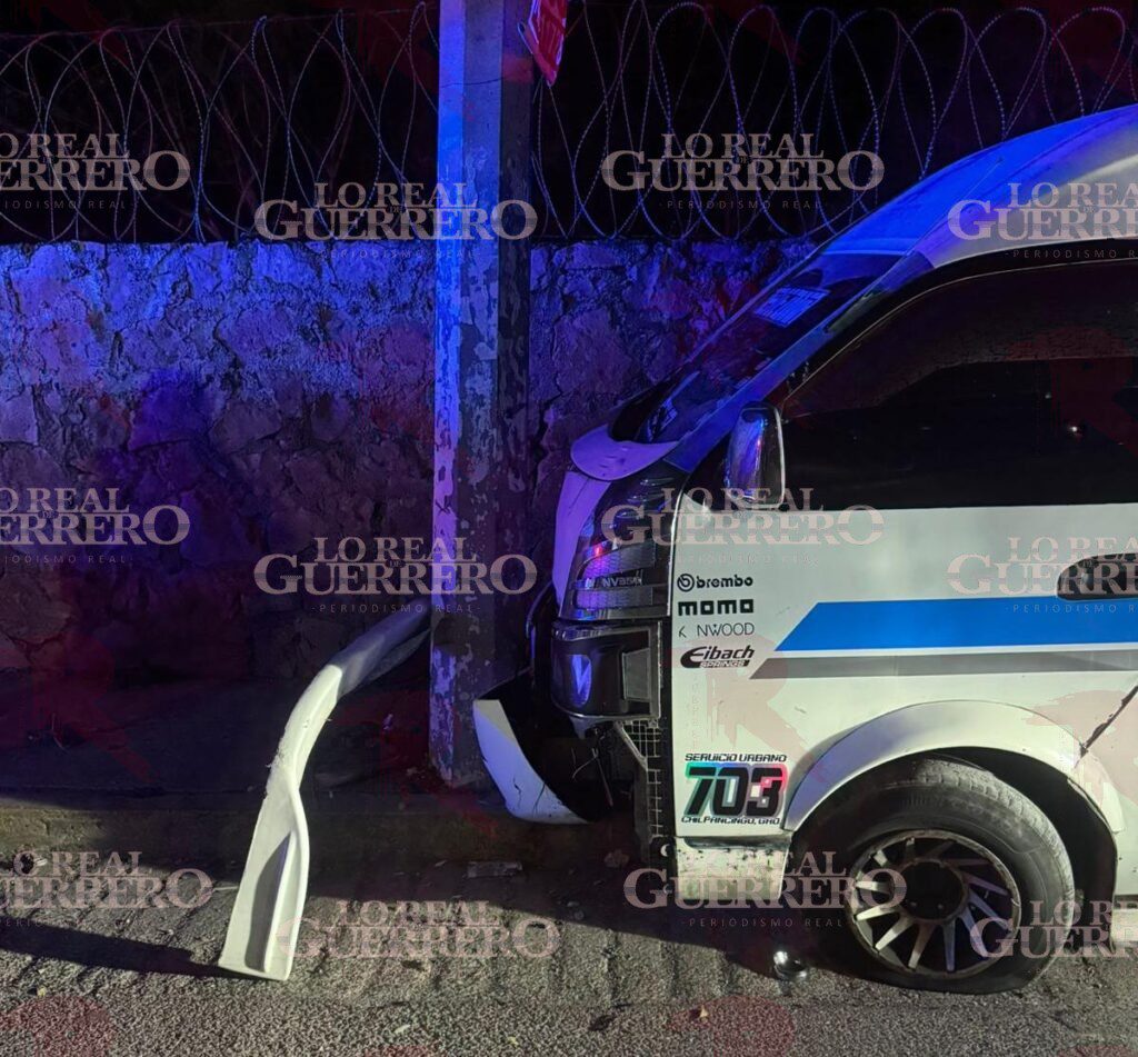 El chofer de la urvan 703, de la ruta Jardines de Zinnia, no fue localizado en el lugar, donde únicamente quedó abandonada la unidad, la cual se impactó contra un poste de concreto.