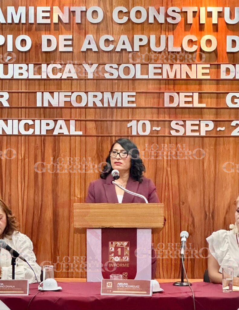 Acapulco, Gro.– La presidenta municipal Abelina López Rodríguez presentó ante el Cabildo de Acapulco su Primer Informe de Gobierno 2024-2027, en el que expuso las acciones realizadas durante su administración.