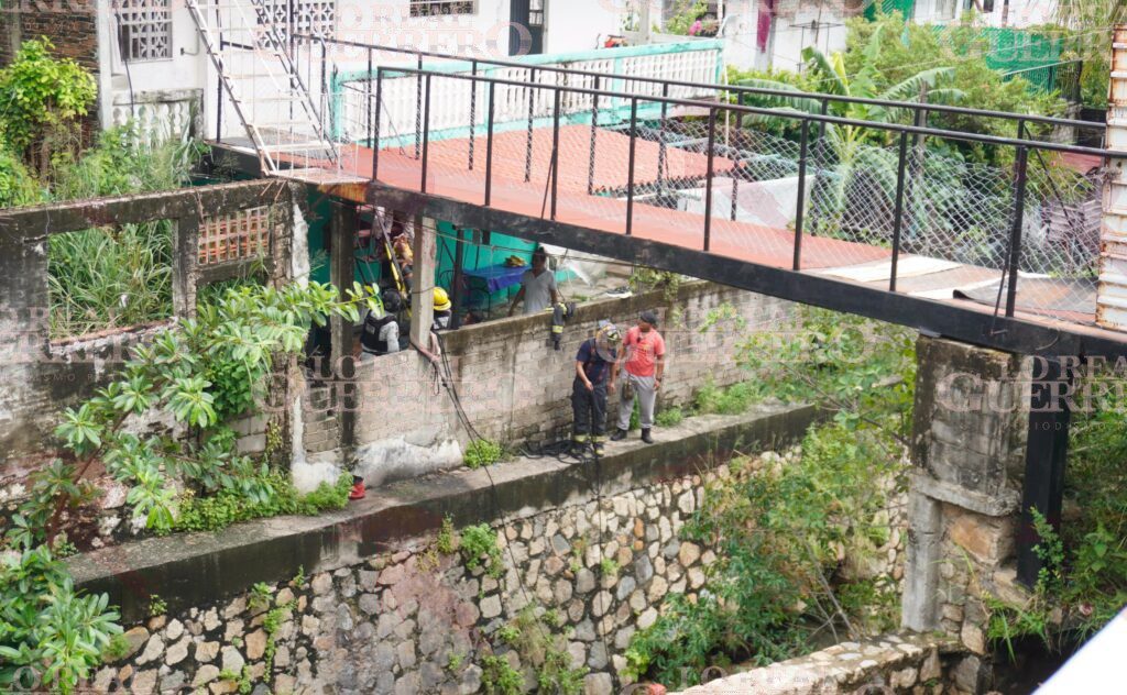 Personal del Heroico Cuerpo de Bomberos de Acapulco rescató el cuerpo con apoyo de una camilla, trasladándolo por un muro que delimita el canal.