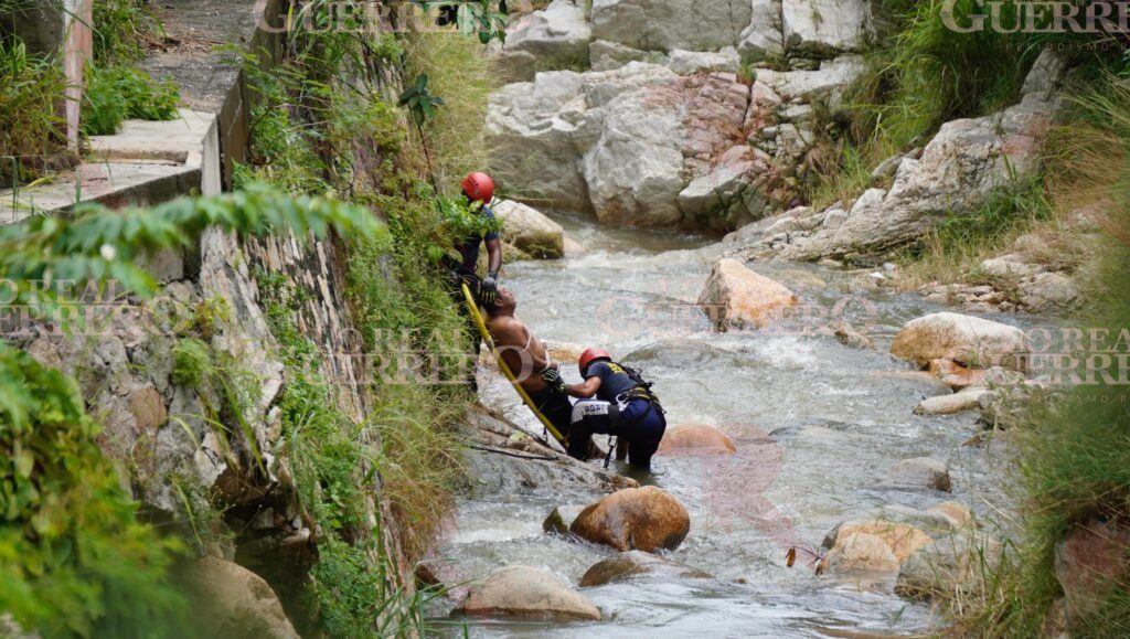 Acapulco, Gro., 22 de septiembre de 2025.– El cuerpo de un hombre fue rescatado tras perder la vida ahogado en un cauce pluvial de la colonia Bellavista de Acapulco, donde presuntamente se metió a bañar pese a la creciente provocada por las lluvias de la tormenta “Narda”.