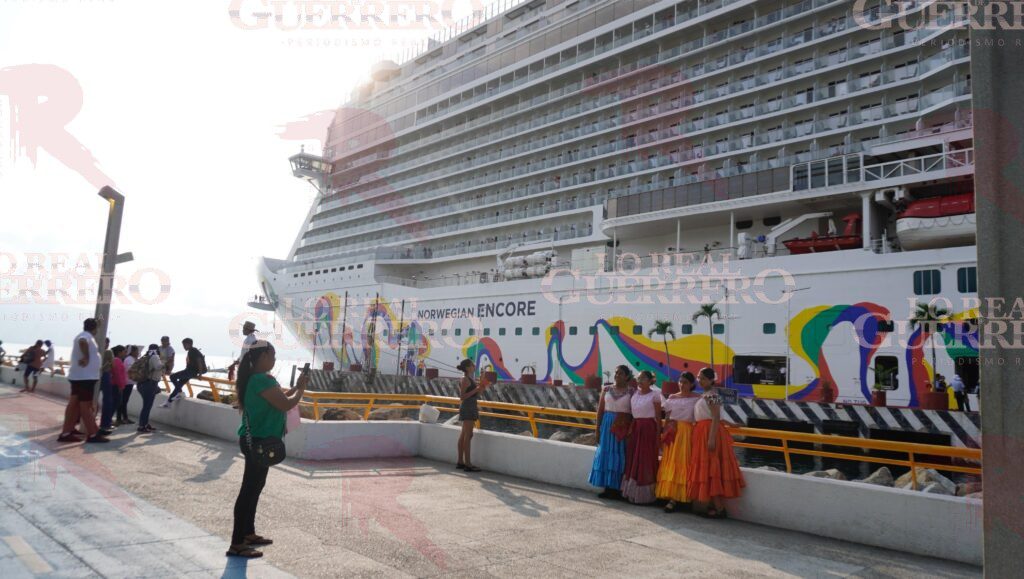 Acapulco, Gro., a 28 de octubre de 2025.– El crucero Norwegian Encore arribó al puerto de Acapulco la mañana de este martes, trayendo casi cuatro mil pasajeros a bordo, en beneficio de cientos de prestadores de servicios turísticos.