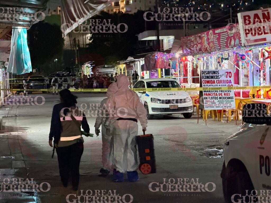Acapulco, Gro., a 13 de enero de 2025.– Con disparos de arma de fuego fueron ultimados dos hombres la noche de este martes en una fonda del mercado de artesanías “La Dalia”, ubicada a unos pasos de la avenida Costera Miguel Alemán, en Acapulco.El reporte de la agresión llegó a las autoridades alrededor de las 18:30 horas, en la calle Juan Serrano del fraccionamiento Magallanes, donde sujetos armados abrieron fuego contra dos hombres que presuntamente ingerían bebidas embriagantes.Elementos de la Guardia Nacional arribaron como primeros respondientes, encontrando a un hombre tirado en la calle, entre sillas y mesas, el cual ya no contaba con signos vitales; mientras que otro más se encontraba sentado en la banqueta y aún presentaba signos vitales, por lo que se solicitó el apoyo de socorristas.Minutos más tarde, al lugar de los hechos llegaron elementos de la Cruz Roja Mexicana; sin embargo, nada pudieron hacer, debido a que la víctima ya había dejado de respirar a causa de la gravedad de las heridas.Testigos aseguraron que uno de los asesinados era hijo de la dueña de la fonda donde se perpetró el crimen, mientras que el otro sujeto baleado era de oficio taxista, cuya unidad quedó a un costado de su cadáver.Tras las diligencias correspondientes a cargo de autoridades ministeriales, ambas víctimas fueron trasladadas al Servicio Médico Forense (SEMEFO) para la práctica de la necropsia de ley.